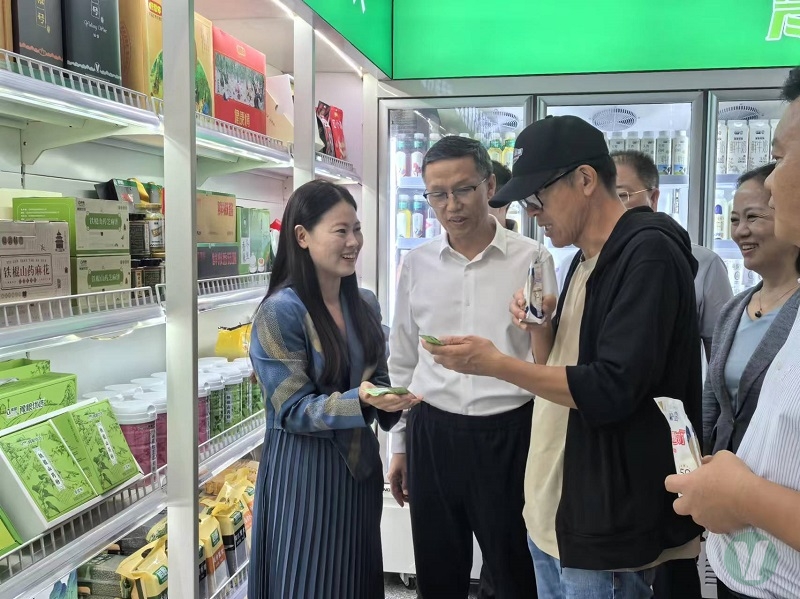 豫農優品農投店展廳,俞敏洪先生被琳瑯滿目的河南優質農產品深深吸引,詳細詢問世通黑豆花、鮮豆漿,愛廚脫紅衣花生油、芝麻香油,凱利來吐司面包、米餅、沙琪瑪,裕廚山藥粉、玉米糝、專用面粉等產品的營養價值及銷售情況。俞敏洪指出,“黑豆花這樣的好產品不愁賣,脫紅衣花生油自己從小就愛吃,條裝山藥粉攜帶方便、營養價值高”,對糧投集團旗下產品給予高度肯定!
